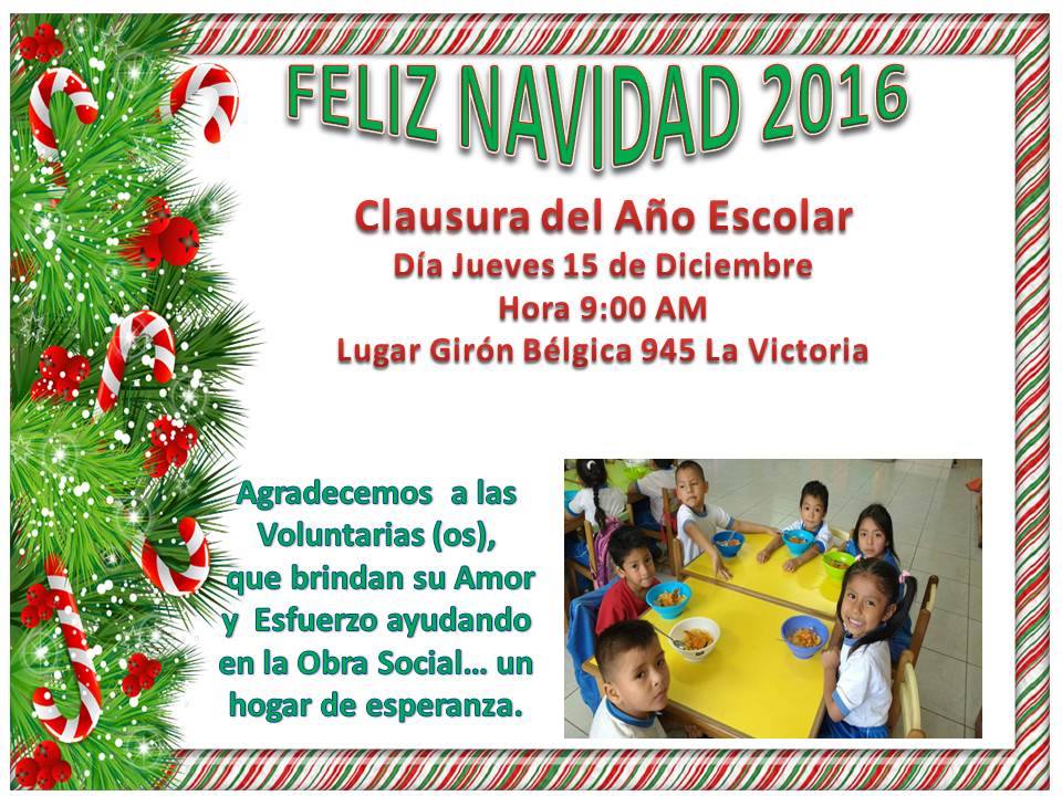 En la obra Social...un hogar de esperanza, clausura escolar. Gracias a Dios y a todos los voluntarias (os) que ayudan con su gran corazón, a que se haga realidad la educación de nuestros niños. Este año hubo graduación, bailes, regalos para nuestros alumnos, hermanos y víveres. Un buen año y que el próximo, tengamos muchos motivos más para celebrar.